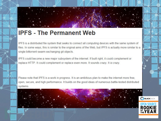 人们所知的开源,它的本意用简单的方法解决复杂的问题,这样产生许多新颖的想法,但是那些强大的项目仅仅是开源社区的冰山一角。IFPS有一个非常激进的团队,这个概念的提出是大胆的,令人惊讶的,有点甚至高不可攀。看起来,一个点对点的分布式文件系统是在寻求将所有的计算设备连在一起。这个可能的 HTTP 替换品通过多种渠道维护着一个社区,包括Git社区和超过100名贡献者的IRC。这个疯狂的想法将在2015年进行软件内部测试。