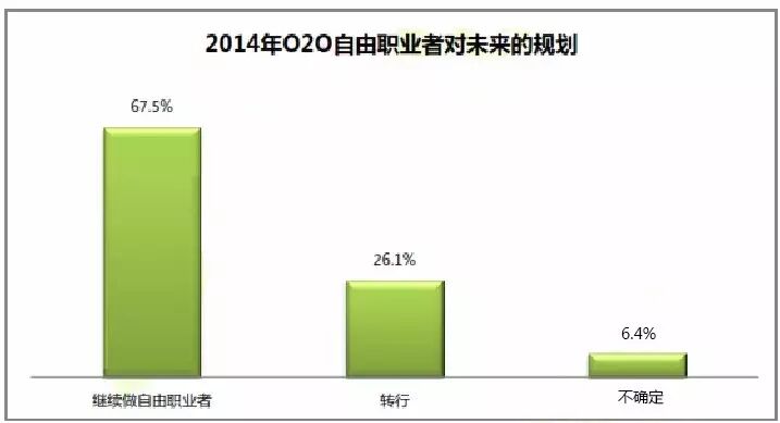 O2O 自由职业者也面临不少尴尬,收入不稳定、社交范围窄、心理负担大这成为他们担心的三大难题。与此同时,保障体系还不够完善,也让这些自由职业者面临被社会孤立的局面。接受调查的O2O自由职业者中,67.5%的人在未来规划中仍选择继续做自由职业者,而26.1%的自由职业者会选择转行。